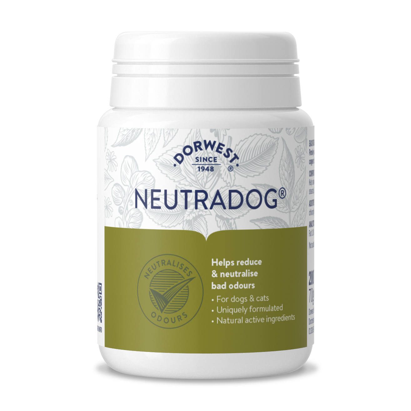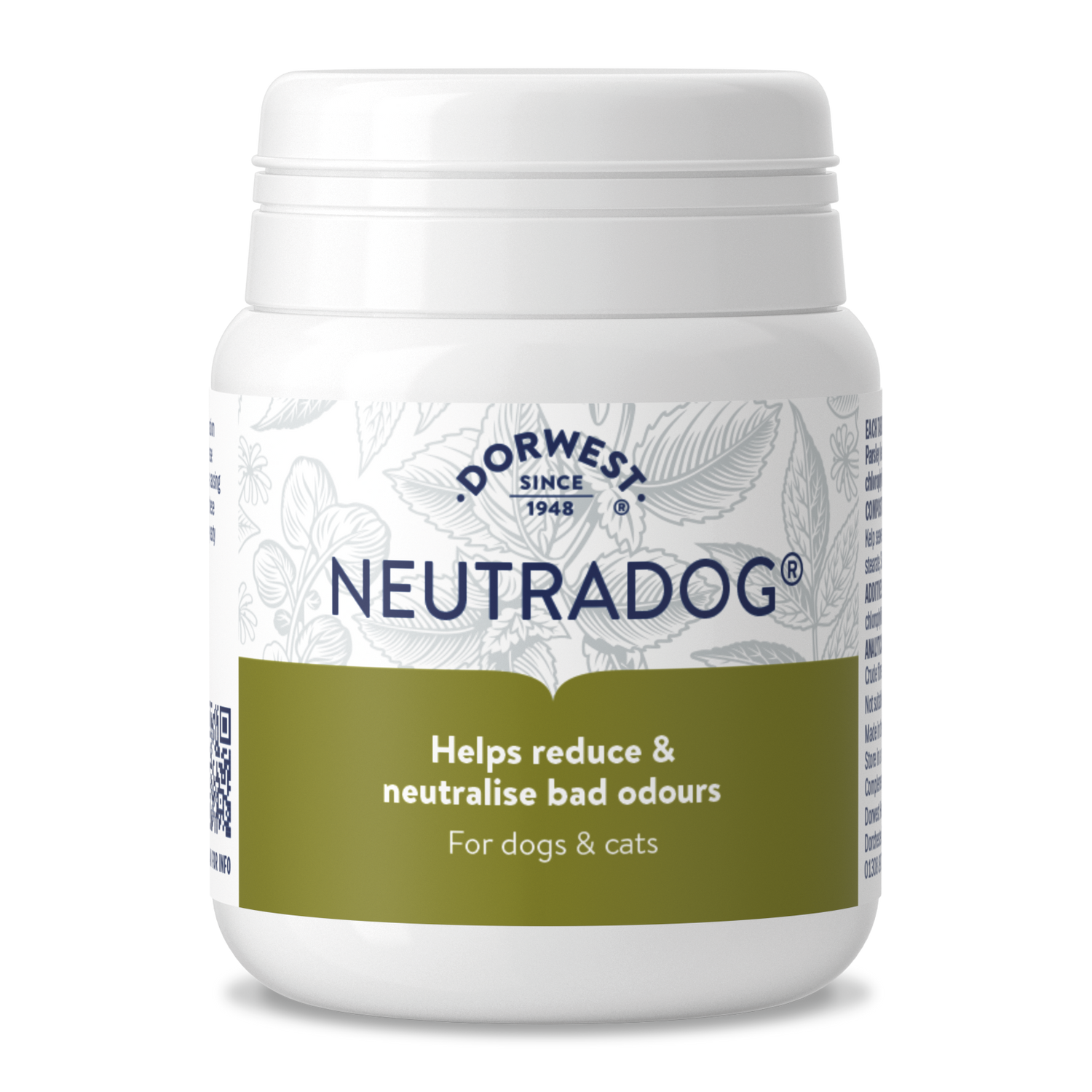 The ideal supplement for whiffy canines, Neutradog® can be used for bitches in season, dogs with bad breath, smelly yeasty skin and for older dogs. Using a powerful combination of chlorophyllin, parsley, seaweed and mint, it helps to reduce odours in the body, before they are released!