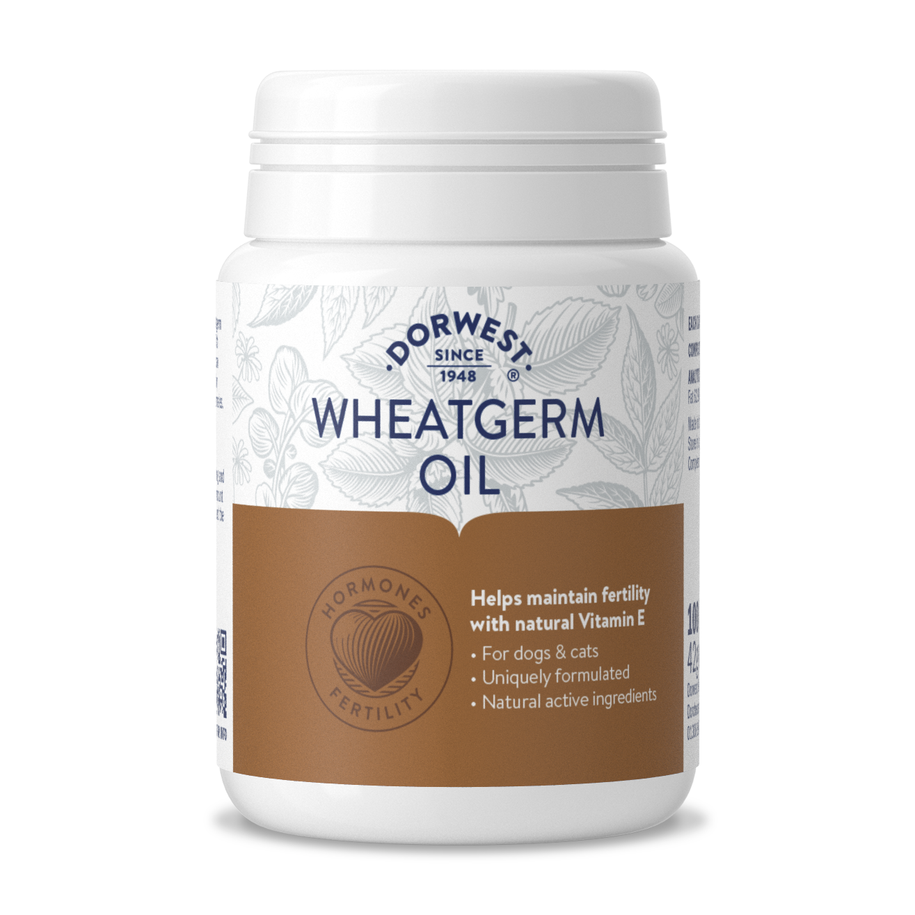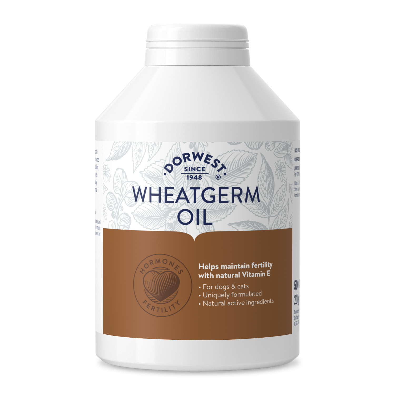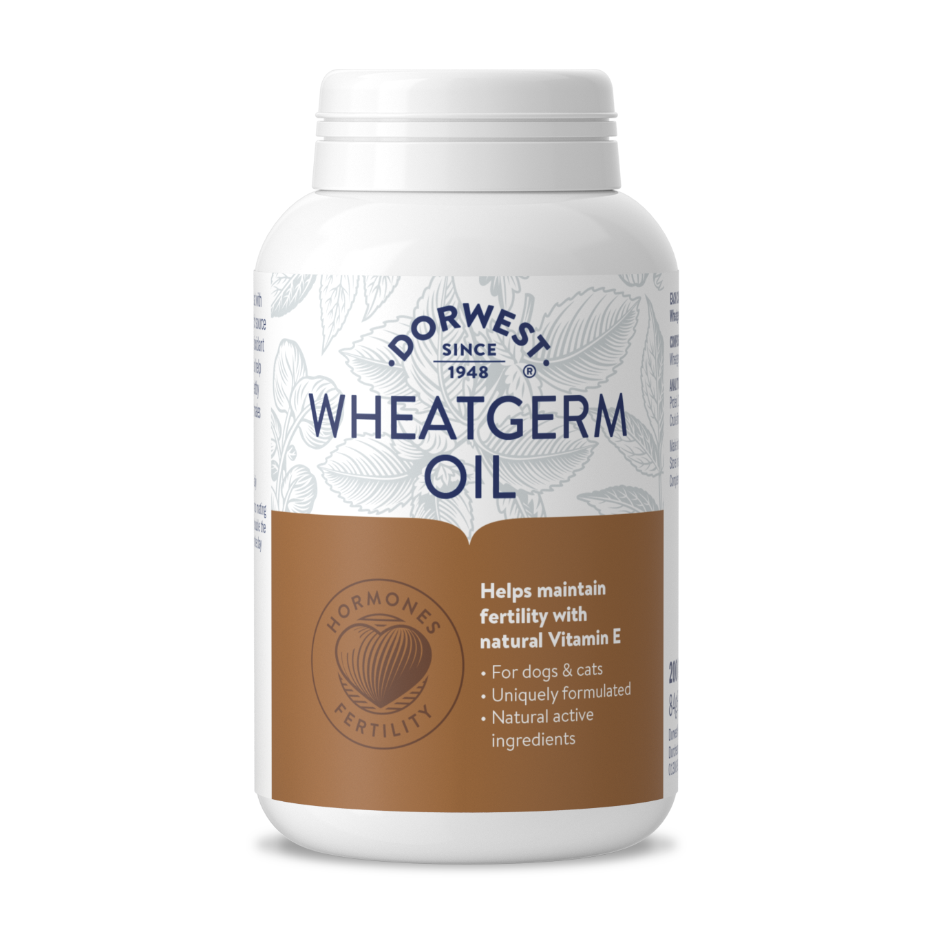 Wheatgerm oil is naturally rich in vitamin E, a potent antioxidant which neutralises free-radicals. Free radicals are produced as a by-product of everyday cell functions, so a plentiful supply of vitamin E is beneficial to keep them in check. Our Wheatgerm Oil Capsules can be given year-round to help promote a healthy skin and coat and are also used to maintain fertility and a healthy reproductive system in both male and female pets.