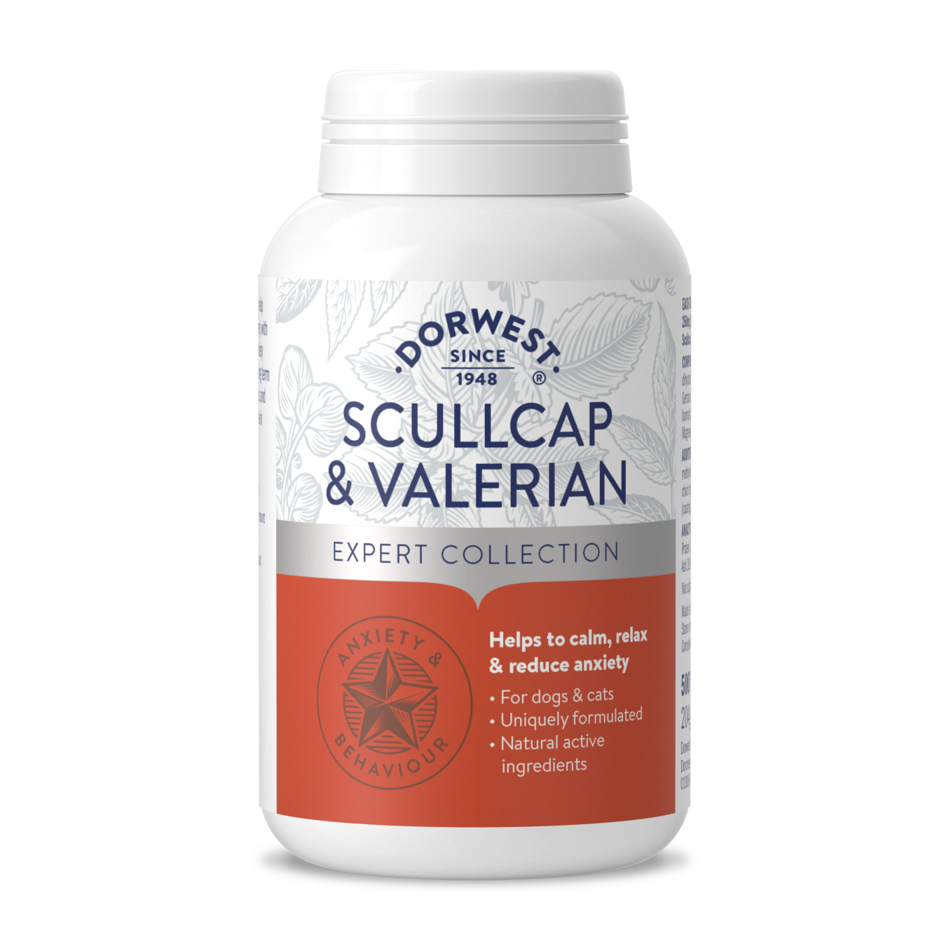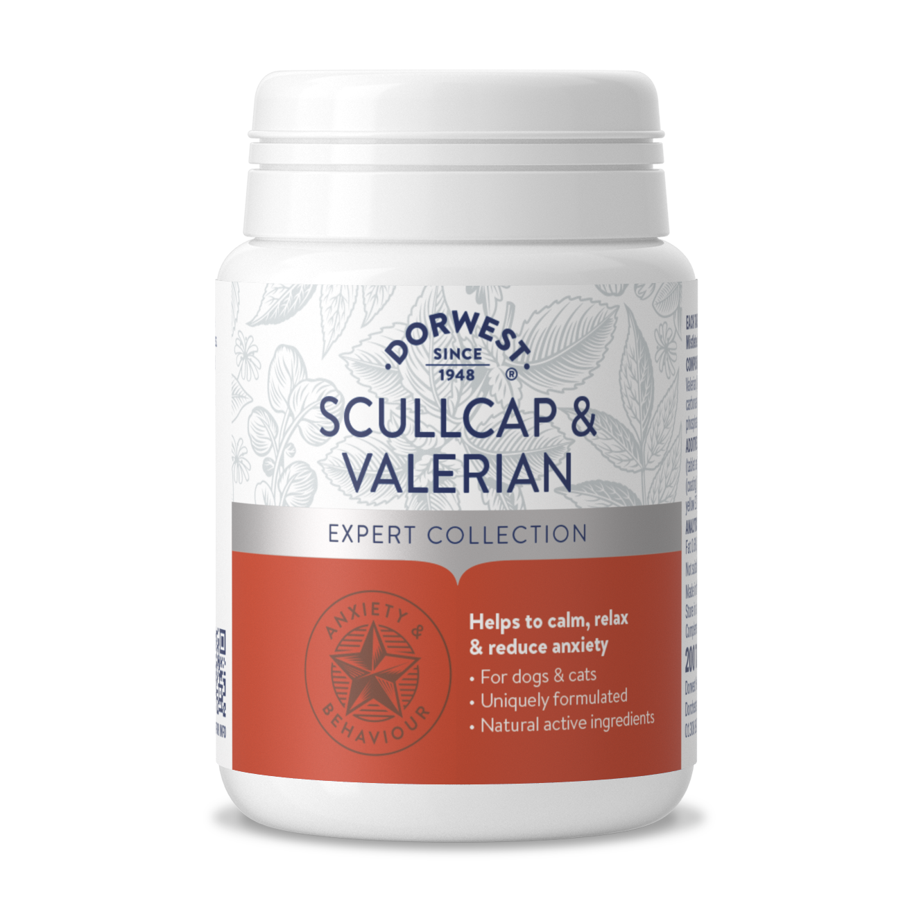 The specially selected ingredients in our Scullcap & Valerian Tablets work together to help tackle stress, fear and anxiety in your pet: